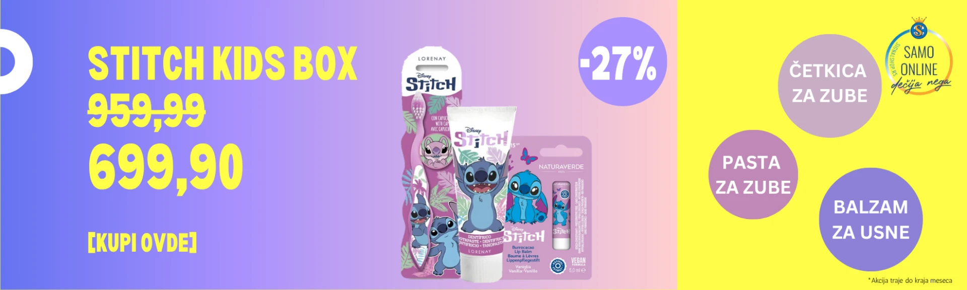 STITCH MAKE-UP SET (SJAJ ZA USNE, SENKE ZA OČI, RUMENILO, ČETKICA, OGLEDALO)